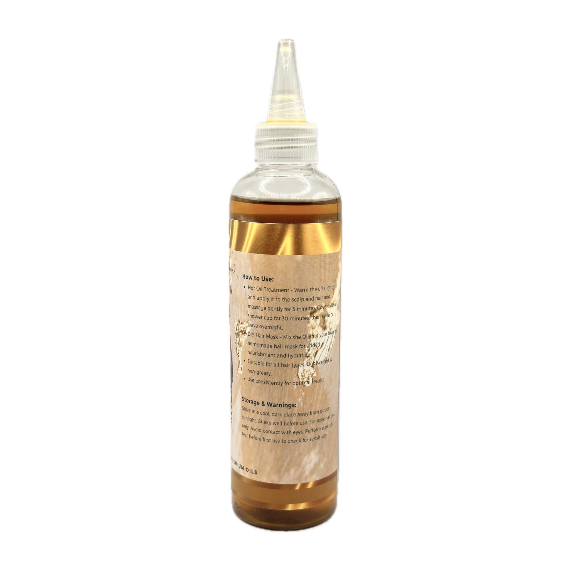 Apply directly to scalp or hair, massage for 2–5 minutes, and style as usual. Use 2–3 times per week or as needed. For deep conditioning, use as a hot oil treatment and rinse after 30 minutes.